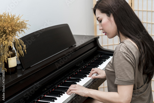 Музыка и стиль: девушка за синтезатором в действии