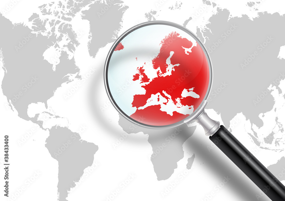 Фото географической карты с использованием лупы