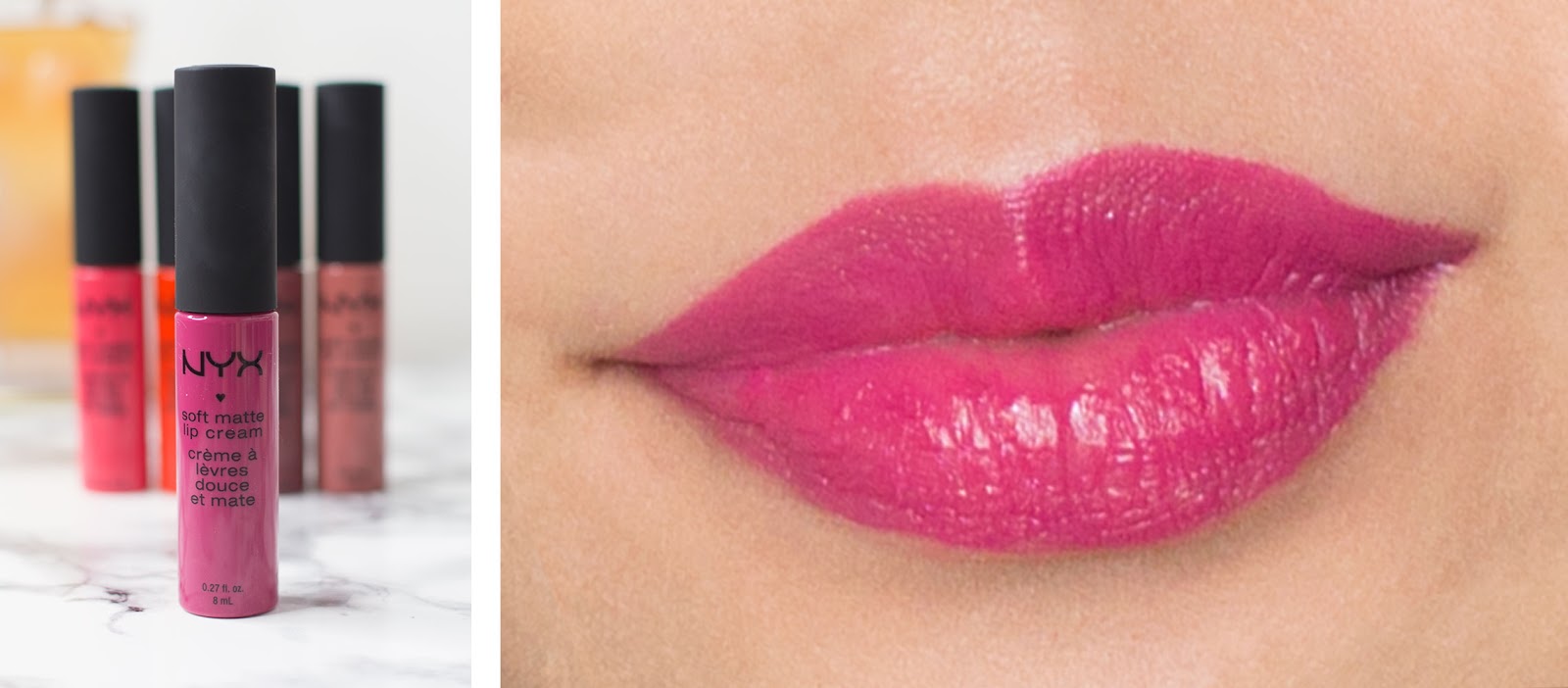 Яркие оттенки помады NYX: фуксия